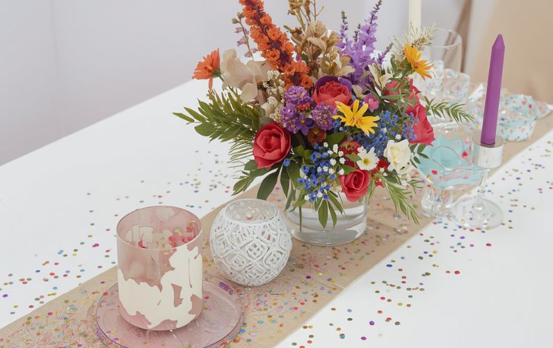 Centerpiece supplies, table runners, confetti, and themed table décor for any occasion.